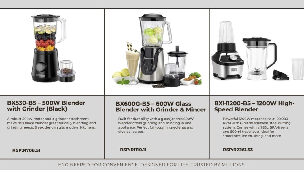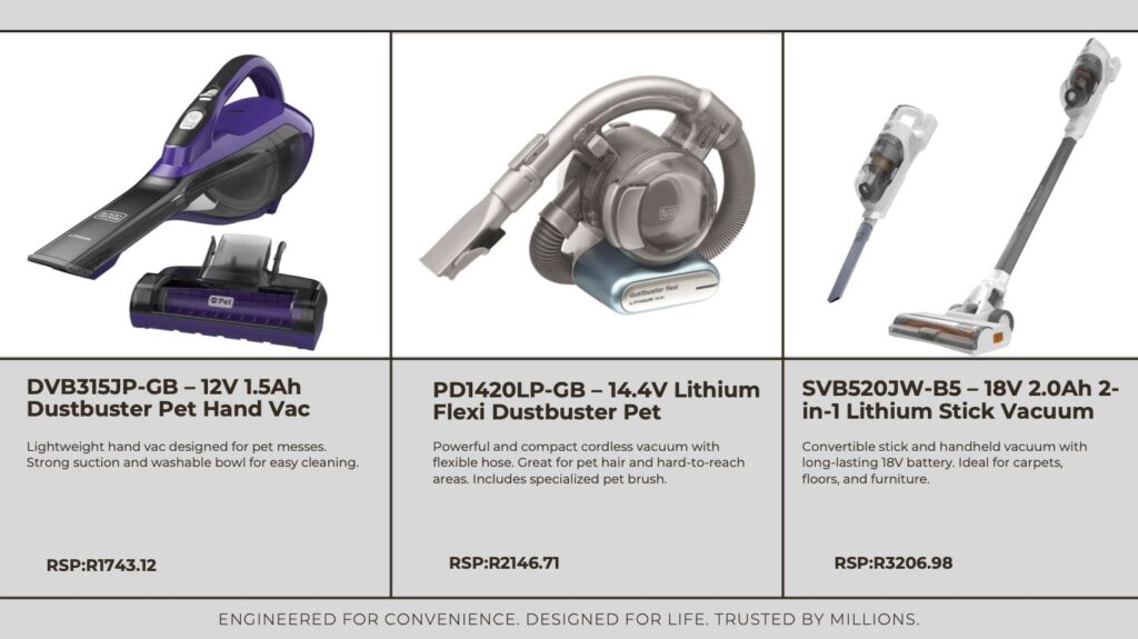 Headquartered in Dubai UAE, DVM International has built a strong reputation distributing world-renowned brands—including Sony, Philips, De’Longhi, Kenwood, and Braun—across Africa and the CIS region. With operations in more than 14 African countries, the company ensures that South African consumers can now shop with confidence, knowing every BLACK+DECKER product is authentic, warranty-backed, and supported locally with after-sales service.