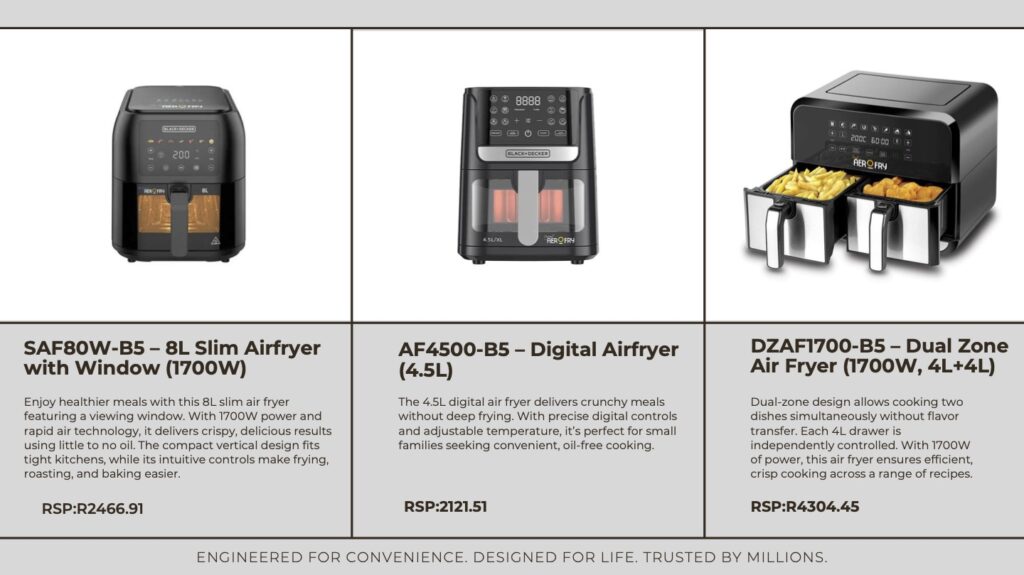 The BLACK+DECKER Home Solutions range will be available from the start of October 2025 on Amazon.co.za, followed by a wider rollout to leading retailers and online platforms in the coming months.