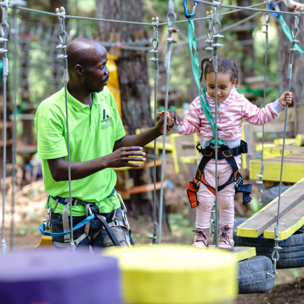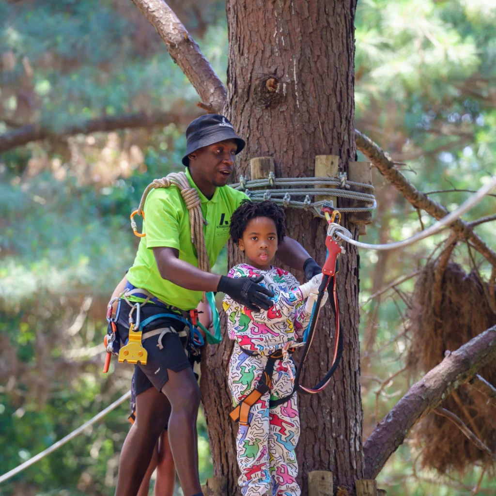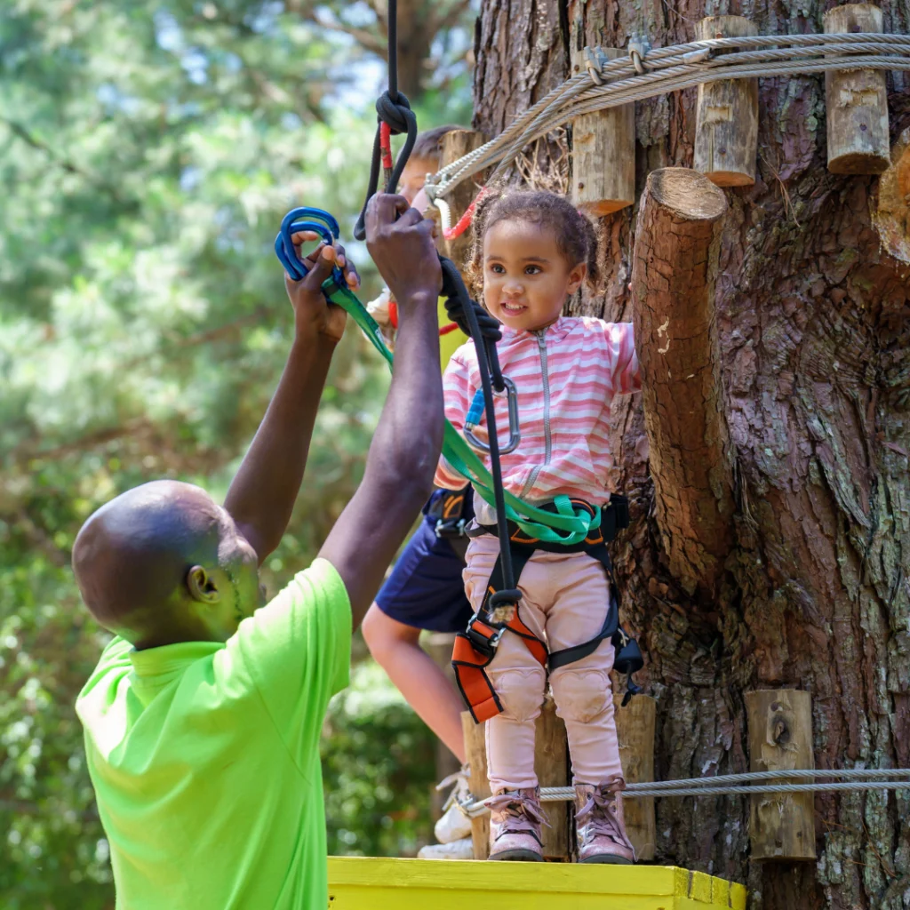 • Acro-Twigs (Kiddies Course): Perfect for ages 3–6, introducing little ones to climbing, swinging and exploring the trees safely.