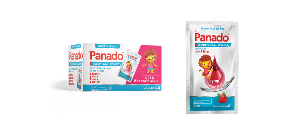 The Panado® Strawberry 5 ml Sachets2 contain the same trusted2 formulation, strength and berry nice flavour parents are familiar with, ready to work immediately3 when pain or fever strikes.