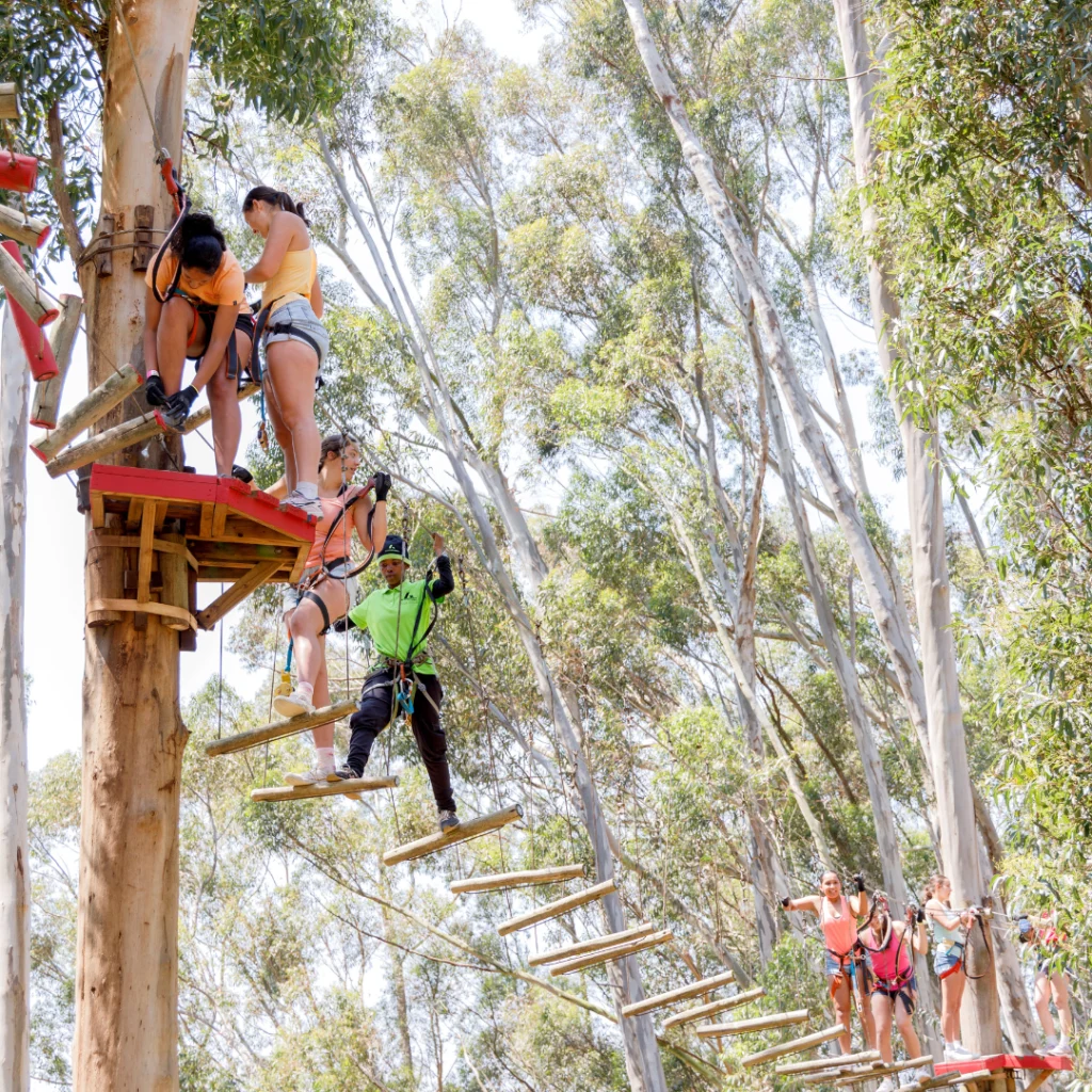- Monkey Moves (Ages 7+, 1.2 m+): A beginner course with just the right amount of challenge for growing kids and adults new to the treetops. (Green)