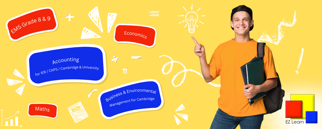 Thanks to enthusiastic feedback and word-of-mouth recommendations, EZ Learn now provides courses for IGCSE to A level in Accounting, Business, Economics, Environmental Management, and Maths for Cambridge exams, as well as Accounting resources and classes for IEB and university students.