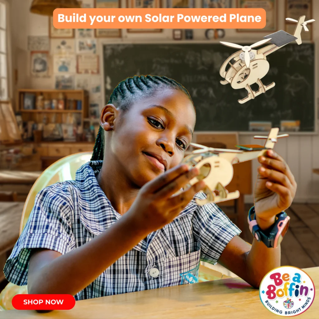 Ignite your child’s inner genius with Be a Boffin! Dr Lara, scientist, mom, and founder of Be a Boffin, loves turning curious kids into little scientists! Her kits spark creativity, critical thinking, and a lifelong passion for STEM. Dr Lara is passionate about STEM education, offering a fantastic collection of educational toys and resources designed to spark curiosity and a love for science, technology, engineering, and math. Our Build-Your-Own STEM kits make learning incredibly fun, fostering critical thinking and hands-on skills. From remote-controlled cars to solar-powered planes, we provide the tools to build bright minds. Explore our range and equip your children with the skills they need for a successful future! Let’s build the next generation of innovators, one kit at a time!