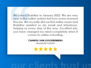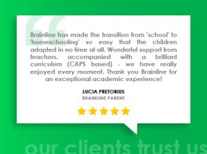 Brainline is an online education provider that offers a CAPS-compliant and IEB-recognised curriculum to learners from Grade R–12, which is accepted at other schools and national and international universities. Our language of tuition is English and Afrikaans.