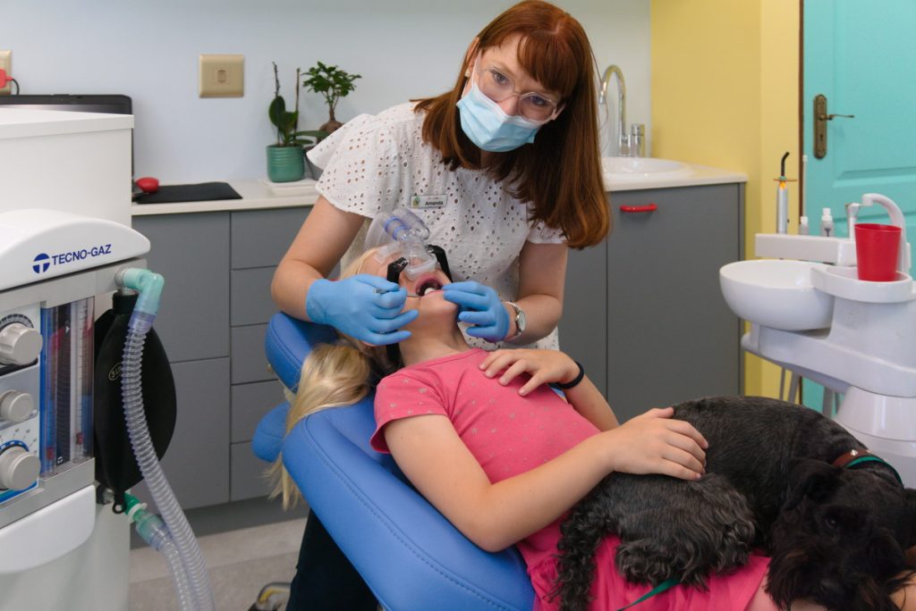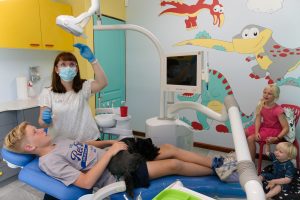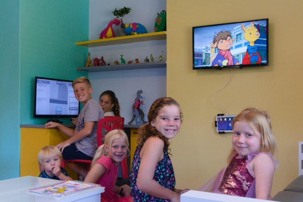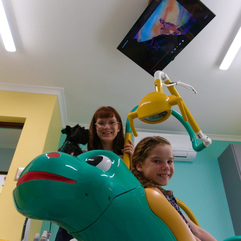 I love children and, as a mother, I know how frightening it can be to go to the dentist. DinoDent has the best “state of the art equipment”, including: A dinosaur dental chair that has a tablet (with Netflix) and an octopus that hide the instruments.