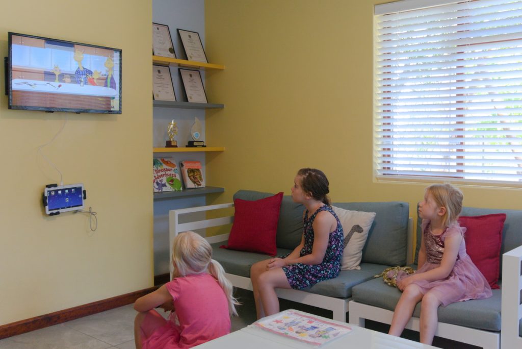 Does your child have skew teeth? Have you been told to wait until all the permanent teeth are in the mouth before starting with braces (orthodontic treatment) or that your child needs to have healthy teeth pulled to make more space? In most cases it is beneficial to start early (interceptive) orthodontic treatment from as early as 7 or 8 years, but it is also very effective at a later age. This early treatment reduces the likelihood of extracting permanent teeth and jaw operations later in life. It is a cost effective and very conservative way of providing your child with a beautiful, confident smile! Come play at the dentist with a jungle-gym, playstation, dvd’s and lots more!