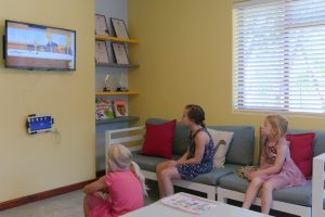 A highly specialized X-ray machine that can show panoramic views of both the baby and permanent teeth together, An “AquaCare” machine that cleans cavities with water and salt instead of a drill, A “Dental Wand” (electric injection) that looks like a pen and is less painful and daunting for both parent and child.