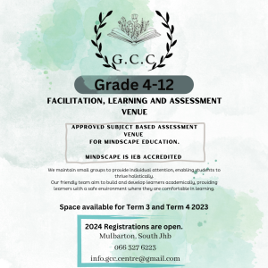 G.C.C Facilitation and Assessment Centre, is a small centre family orientated education facility providing a safe place where we encourage learners to reach their best potential; and inspire children to grow and develop in all areas of academics, and life itself.