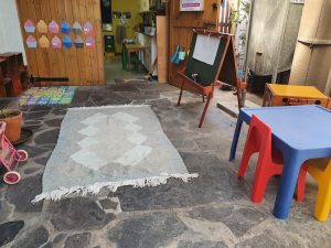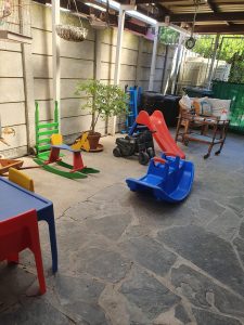 Justine’s school is situated in Pinelands with a wonderful inside, outside flow for the children to explore. There is a lovely large garden with space to run, spaces to discover and equipment to climb and improve those gross motor movements. The inside outside flow is perfect for rainy days where the children will still be able to have that sense of outside time with an under-cover area. This area allows the children to get their exploring hats on and have fun with their friends, despite the weather.