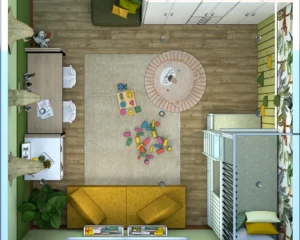A scaled layout showing room dimensions and furniture placement for a functional and safe space.