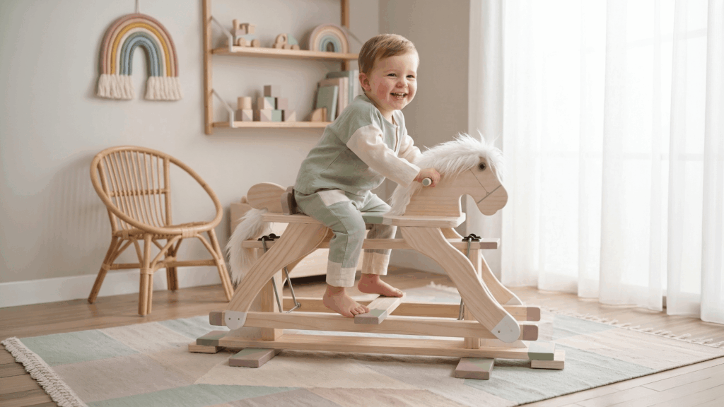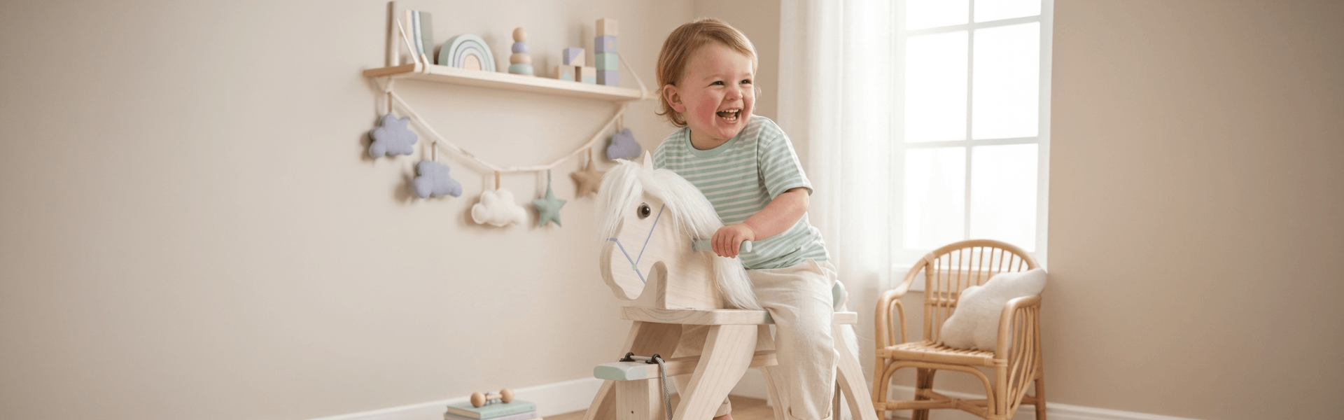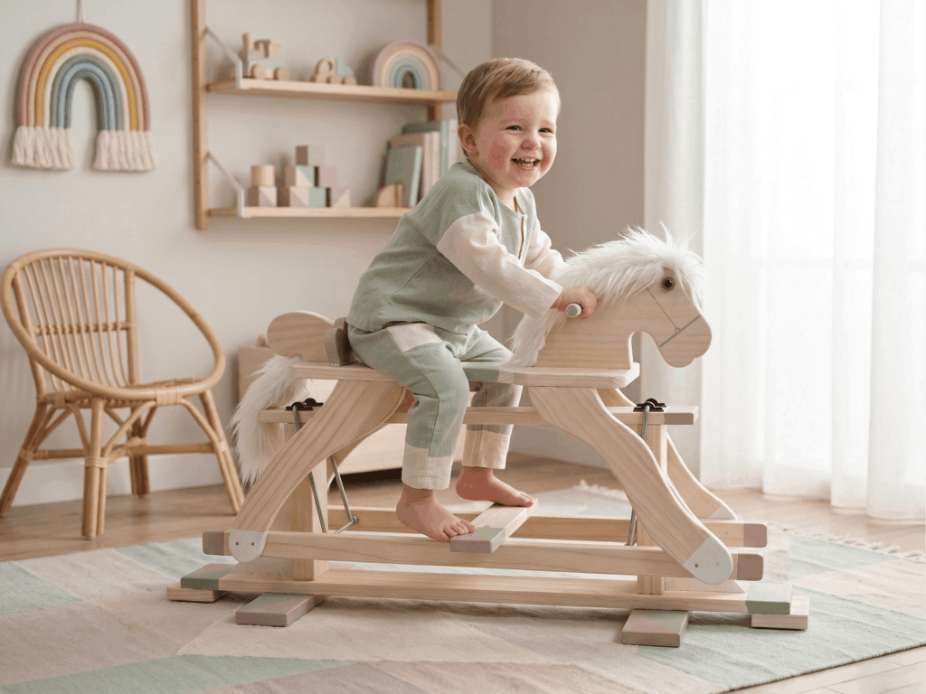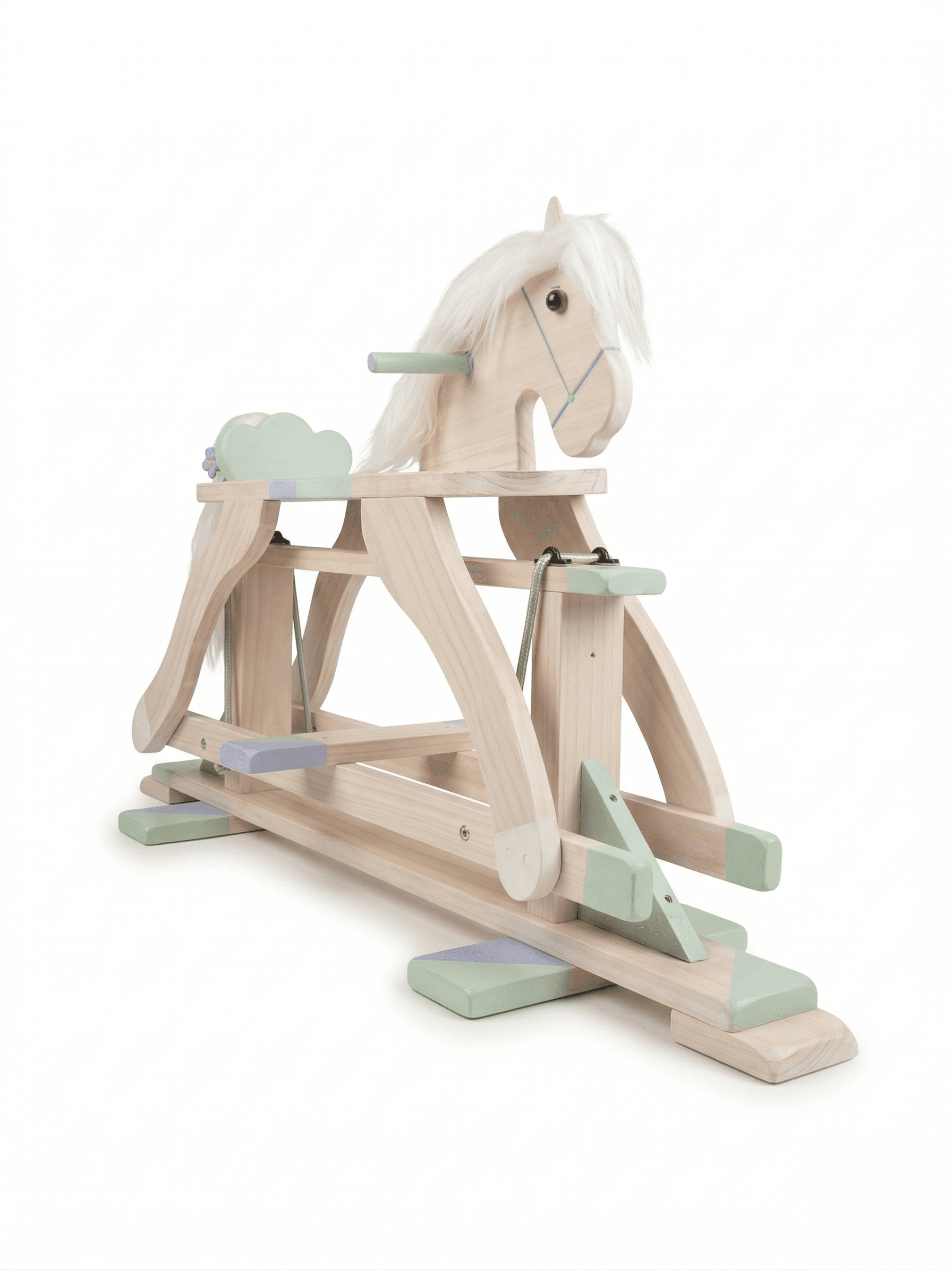 Solid wood, hand-finished, and made to last well beyond childhood. The Heritage Edition rocks gently and steadily, giving little ones a safe place to develop balance, coordination, and the kind of imaginative play that screen time can’t replace. Thoughtfully crafted down to the last brushstroke with non-toxic paint