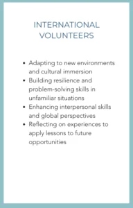 ๐Ÿค ๐—œ๐—ป๐˜๐—ฒ๐—ฟ๐—ป๐—ฎ๐˜๐—ถ๐—ผ๐—ป๐—ฎ๐—น ๐—ฉ๐—ผ๐—น๐˜‚๐—ป๐˜๐—ฒ๐—ฒ๐—ฟ๐˜€ โ€“ Develop resilience, cross-cultural skills, and a global mindset for meaningful experiences in a new environment.