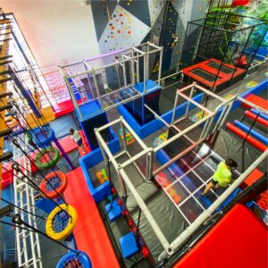 Highflyer Zone (Ages 10+): An adrenaline-filled zone featuring a zipline, high-rope course, and ninja challenging obstacle course for thrill-seekers.