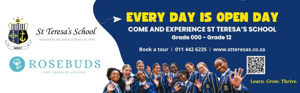 St Teresa’s School is a well-respected independent Catholic school for girls, offering a dynamic and enriching education from Grade 000 to Grade 12. With campuses in Craighall Park (Grades 000–3) and Rosebank (Grades 4–12), we are known for our commitment to academic excellence, holistic development and social and global responsibility.