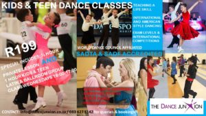 The Dance Junxion specializes in Latin and Ballroom Dancing for Kids, Teens and Adults on a SOCIAL DANCE level up to INTERNATIONAL COMPETITIVE Levels. R199 Special Offer includes