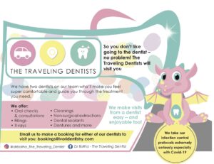 The Traveling Dentists team aims to make every part of the appointment easy and hassle free, starting with the simple booking process. You can pop an email to [email protected] or a Whatsapp to 081 274 6363 and you will receive all important information to get you booked in.
